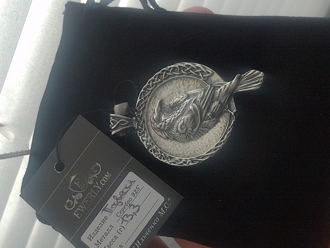 Неймовірно гарний кулон. Як маленька картина або старовинне дзеркало. Раджу цей магазин. Якісне срібло,швидка відправка,помірні ціни.